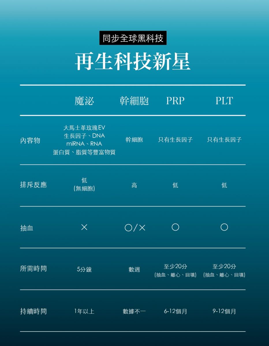 1. 魔泌除了大馬士革玫瑰EV外,瓶內還有其他物質嗎? 冷凍乾燥瓶除了EV粉末外,還含有多種活性成分,如 5 種生長因子、6 種胜肽、穀胱甘肽等 。玻尿酸混合液則還有 4 種生長因子等,能與粉末瓶發揮最大協同效應,透過 ALL-IN-ONE 方式,全面改善肌膚問題 。