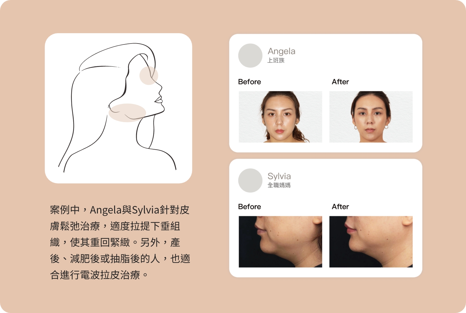 與您分享在睦沐河施打鳳凰電波的真實案例,整合多年微整經驗的OOO醫師,將真、假性韌帶以及臉部淺筋膜支撐區域等影響面容垂垮的關鍵部位比喻為「錨點」(anchor point),並結合Thermage® FLX(“[梭達]熱世紀飛可適除皺系統”,俗稱鳳凰電波)發展出「定錨式拉提法」,特別針對這些錨點進行加強!
