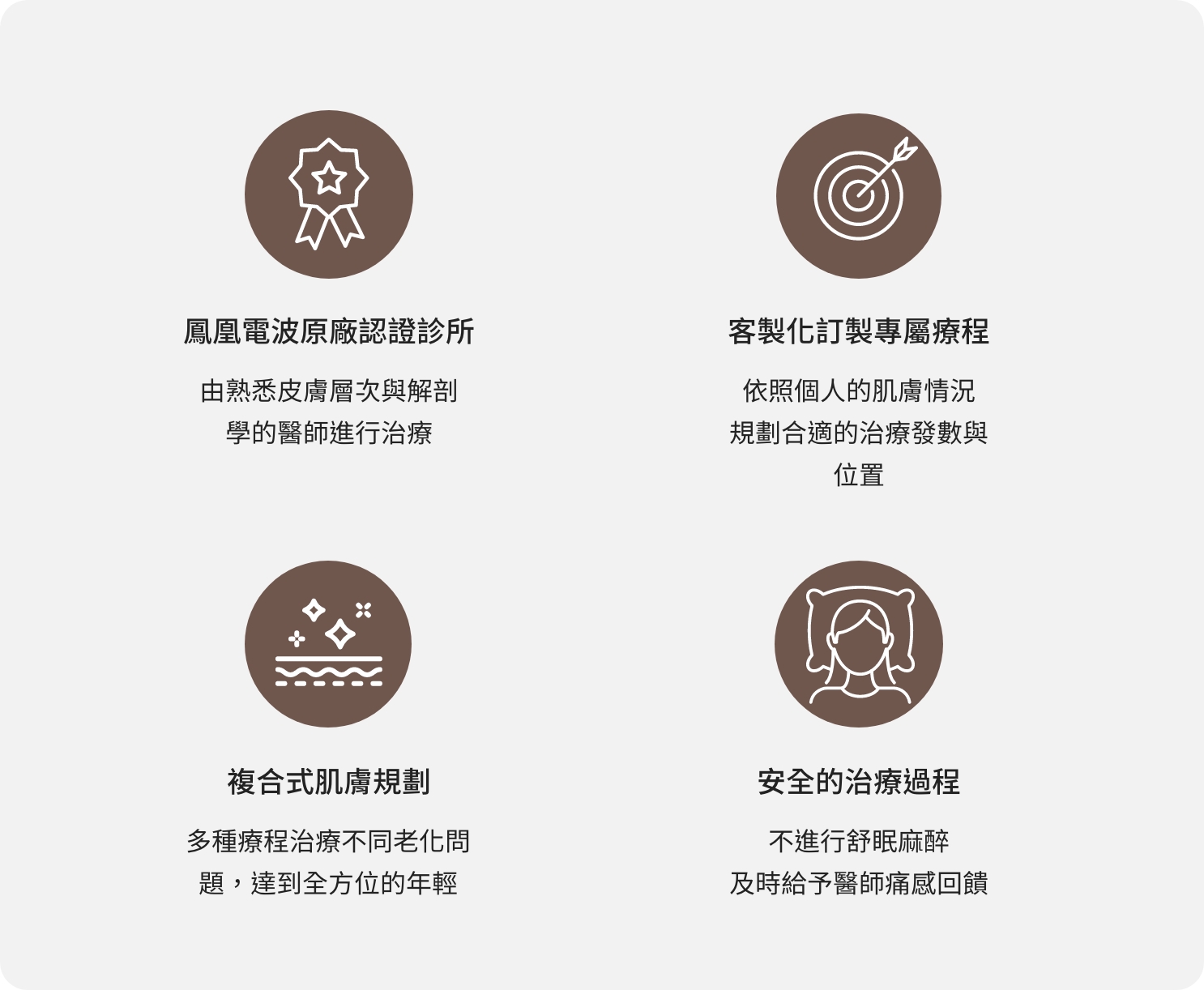 為了提供更高品質的治療,醫師團隊皆為受過原廠嚴格訓練的皮膚專科醫師,對於人體肌膚有更深的瞭解,施作時更能依據治療當下的肌膚狀況進行調整,讓您在安全、無壓的狀態下,釋放個人獨特之美。